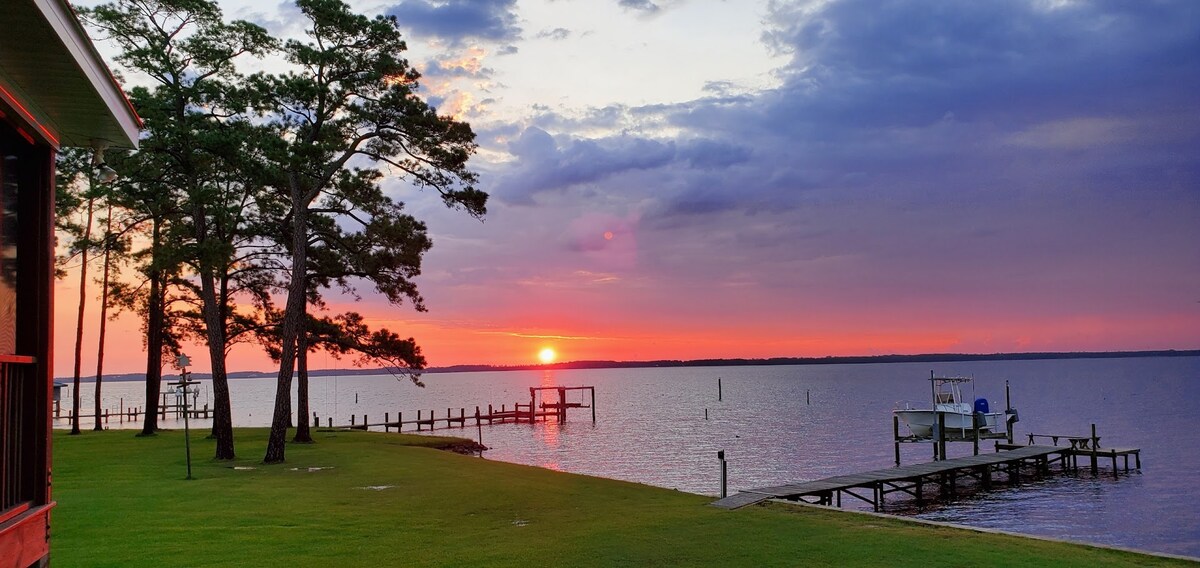 Hermosa y tranquila casa de campo en el corazón de la pintoresca ciudad de Belhaven, en el río Pungo. Pasa tus días de compras boutique en la ciudad, viendo la puesta de sol sobre el agua en el puerto. Excelentes refugios de pesca y vida silvestre locales. Disfruta de la playa frente al río en la ciudad. Pasa las noches comiendo en el gran porche trasero protegido y cocinando en la parrilla. Si es un poco fresco, acurrúcate en el interior frente a los troncos de gas y pasa un rato en familia jugando. ¡Amplio estacionamiento para tu barco!