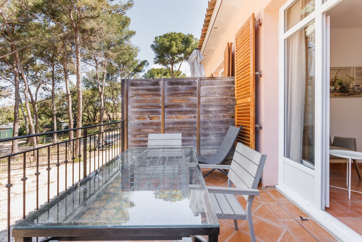 Muy bonito apartamento a 400 metros de la plaza y situado en una residencia nueva con piscina. El alquiler es ideal, con un pequeño supermercado a 100 metros, y la playa y los bares y restaurantes a 400 metros, ¡no necesitarás coche! El apartamento consta de un dormitorio, un baño, una sala de estar con cocina abierta (máquina dolce gusto) y un jardín con terraza para cenar o almorzar.