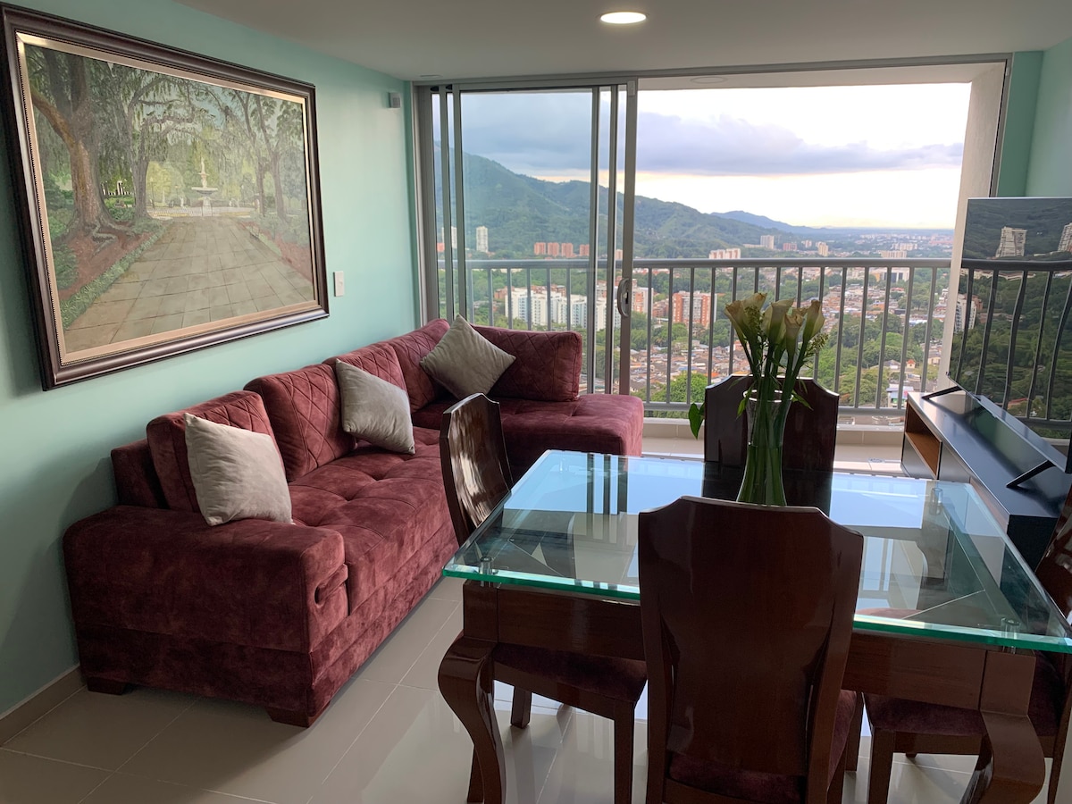 El apartamento cuenta con aire acondicionado y esta ubicado en el piso 18 del edificio más exclusivo de la ciudad. Tiene capacidad para 6 personas. Cuenta con piscina estilo infinity en el piso 20; Turco, sauna, juego para niños, parqueadero, internet, recepción 24 horas, terraza, balde para asados y agua caliente. Excelente vista de la ciudad y montañas. Está cerca al centro, centros comerciales, D1, éxito, Ara, justo y bueno, Etc.