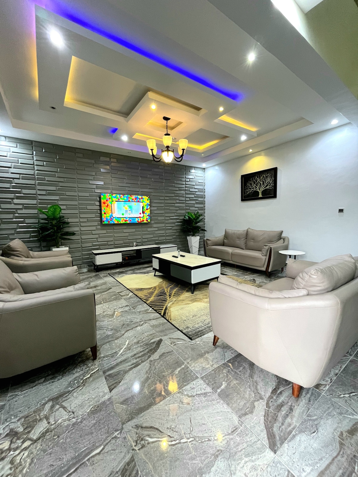 Escape to a tranquil, modern haven in a peaceful estate! This 4-bedroom shortlet features two spacious sitting rooms (upstairs + downstairs), a cozy ante room, and sleek ensuite bedrooms with contemporary curtains. Enjoy 24/7 electricity via a powerful inverter, central hot water, and a fully equipped kitchen. The minimalist decor blends comfort and style, while the quiet surroundings ensure relaxation. Perfect for families, groups, or professionals seeking a noise-free getaway.