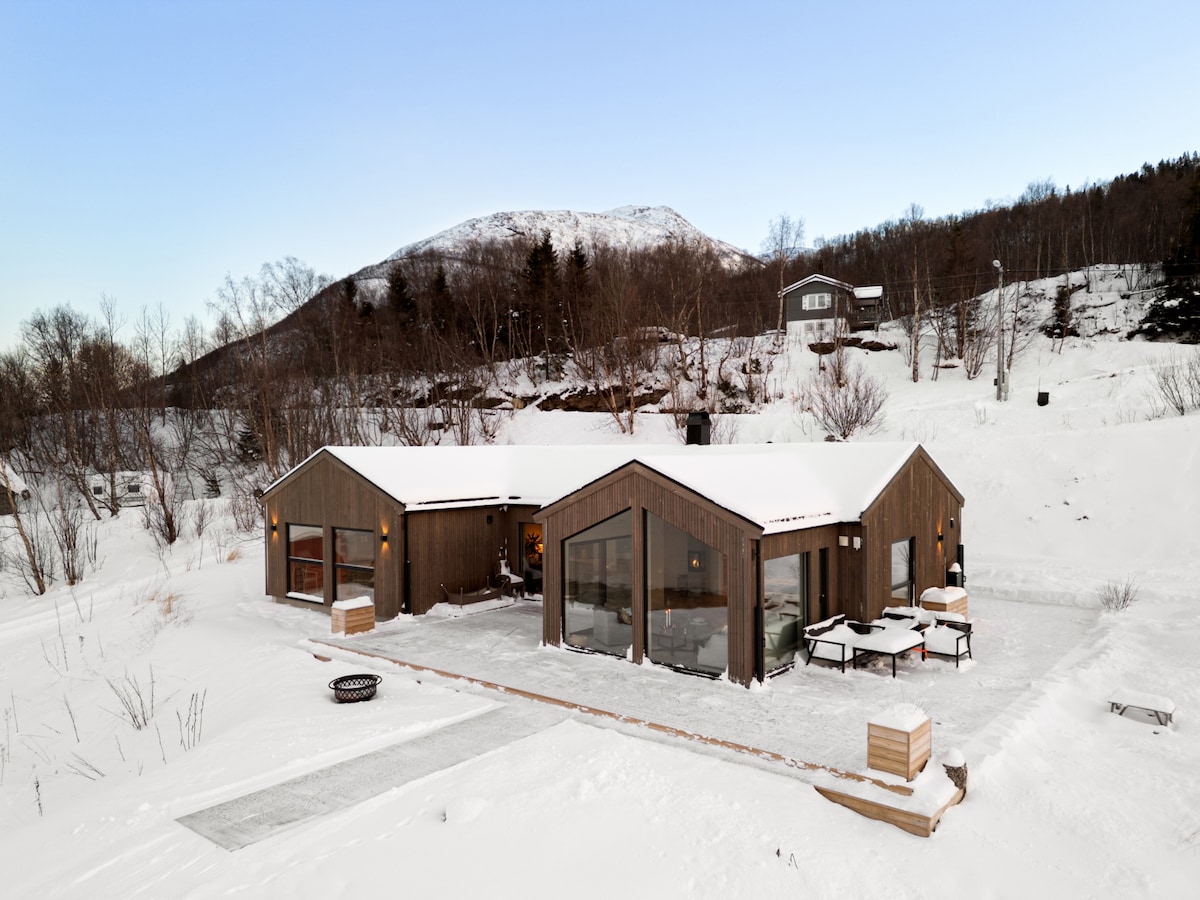 ¿Sueñas con una casa de campo protegida junto al mar? ¡Con la opción de poder disfrutar en el jacuzzi o en la zona de barbacoa sin ser visto! Trae a tu familia o amigos a un lugar verdaderamente único. Las vistas son impresionantes. Durante la temporada de invierno se pueden admirar las luces del norte, durante el período de verano hay una vista increíble del sol de medianoche. El lugar es simplemente mágico, puedes relajarte cerca del fuego con unas vistas estupendas a los fiordos. Se puede alquilar un barco para pescar y chalecos salvavidas.