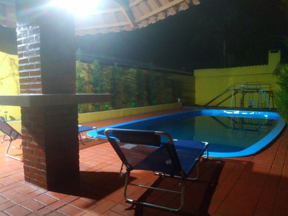 Casa térrea 400 m - Piscina con agua salada - Privacidad, seguridad y silencio. - 4 dormitorios con cómodas camas dobles e individuales. --Aire acondicionado en todas las habitaciones. - Dos cocinas. - Zona de barbacoa. - Mesa de billar oficial. - Garaje para 4 vehículos. - Baños internos y baño. Cama y baños 100% algodón *Contacto con la naturaleza y desconexión de las principales atracciones turísticas durante 15 minutos, aeropuerto *Fácil acceso por carretera pavimentada.