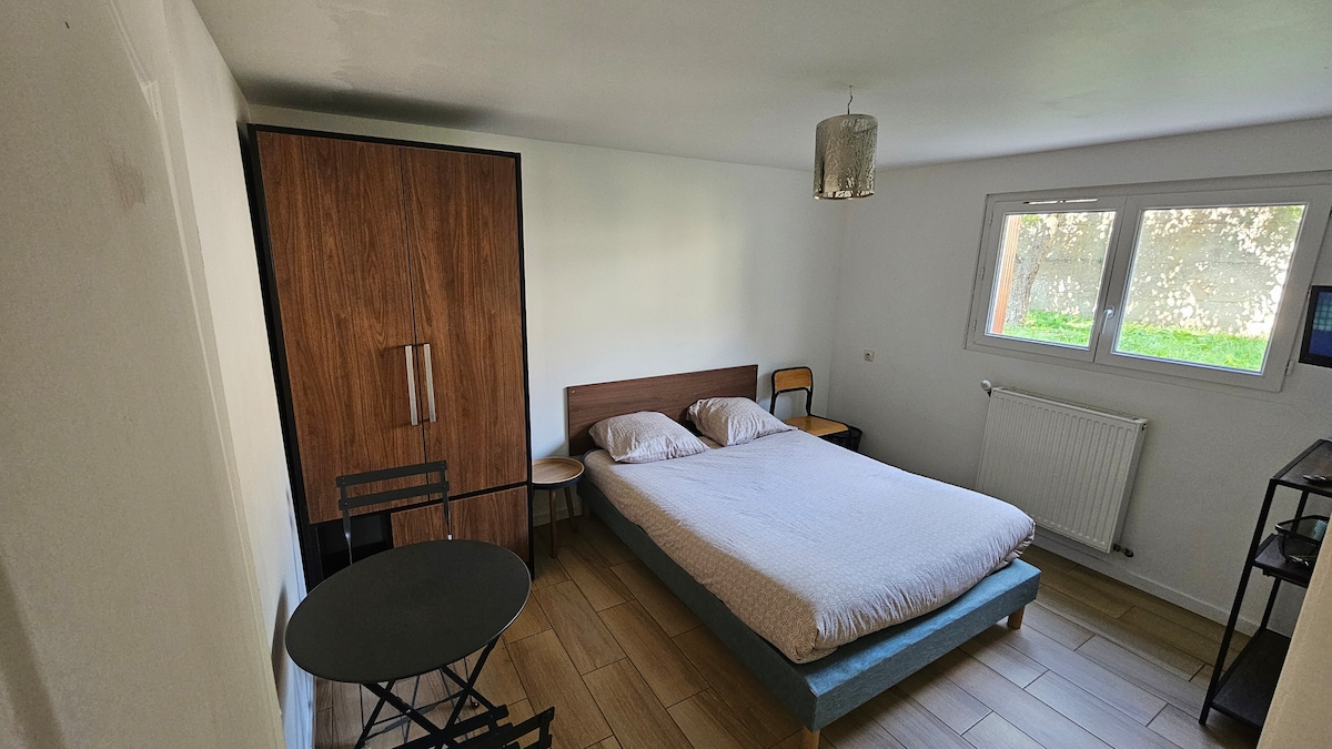 En residencia tranquila y verde: Estudio T1 situado debajo de la casa: Gran ventanal y ventana. Acceso independiente. No hay habitaciones. Sala de estar( 1 cama doble y 1 sofá cama) , cocina independiente , cuarto de baño con ducha. Equipamiento básico para 2 personas. Jardín cerrado y arbolado de 300 m2, para compartir. Estacionamiento privado. Ciudad tranquila y agradable, rodeada de bosques. Estaré encantado de recibirle.