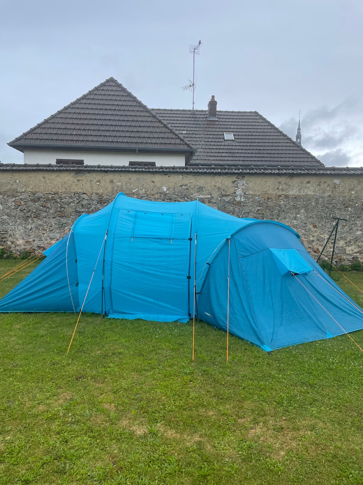 En una propiedad privada de 3000 m² hay varias parcelas para autocaravanas, tiendas de campaña, furgonetas... También tiene a su disposición el alquiler de tiendas de campaña para 2, 4 o 6 personas. Cocina exterior equipada en terraza, ducha sanitaria, piscina climatizada de 4 por 8, jacuzzi de 6 plazas.