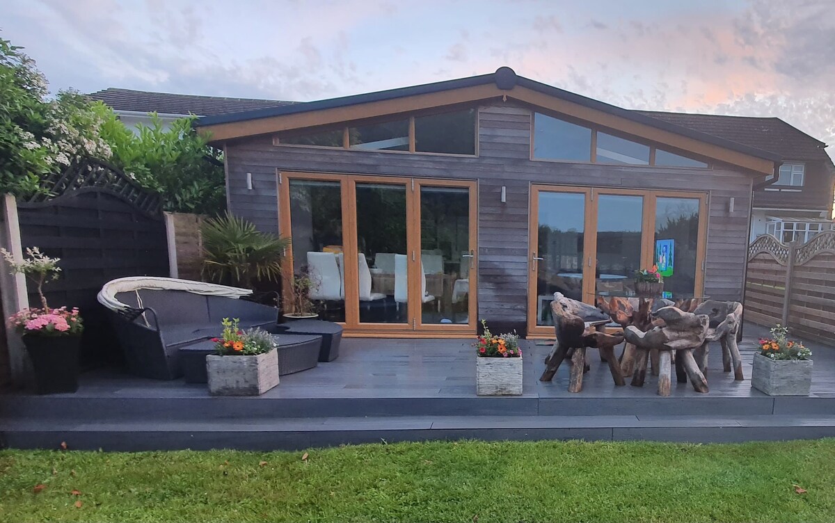 Un moderno anexo independiente en el hermoso bosque de Epping, alojamiento perfecto para excursionistas o para asistir a lugares de celebración de bodas cercanos. A 20 minutos a pie de la estación de Epping (línea central hacia el centro de Londres), o a 5 minutos en coche, a 12 minutos a pie de la calle principal. 1 cómoda cama tamaño king, escritorio configurado para trabajar a distancia, con hermosas vistas. Sky TV y wifi. Pequeña zona de cocina con nevera, microondas, hervidor y tostadora. Acceso privado a la propiedad y al aparcamiento.