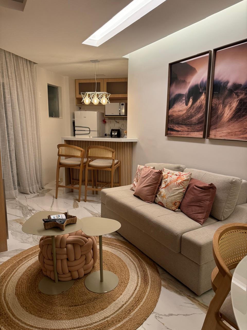 - Piso con fantásticas vistas; - Limpieza diaria sin coste adicional - Apartamento recién renovado con muebles nuevos; - Condominio con conserje 24h/7d (eres bienvenido en cualquier momento), restaurante, piscina, sauna y gimnasio; - Cerradura de contraseña; - Televisión inteligente y aire acondicionado dividido en el salón y el dormitorio; - Wifi. - Capacidad para 4 personas (1 cama doble + 2 colchones) - Cocina completa, incluido purificador de agua fría - A 350 metros de la playa. - Lugar para guardar tus maletas