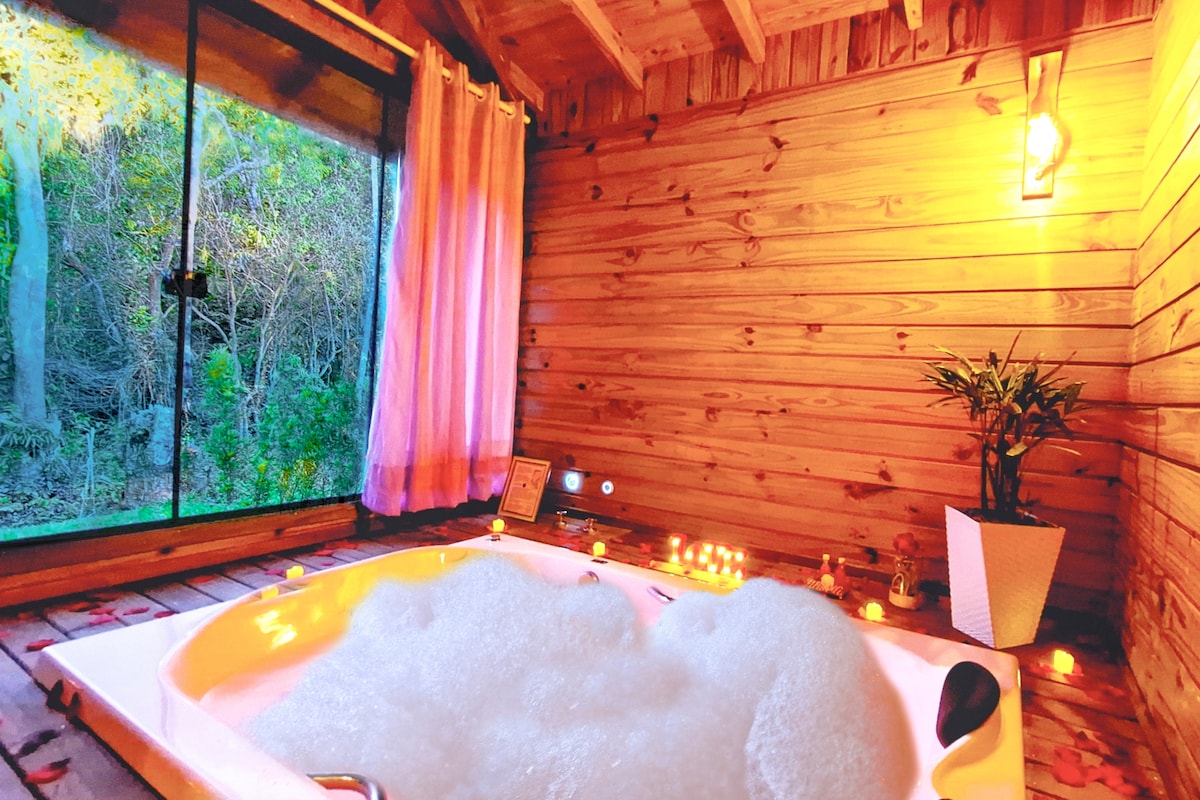 Chalé das Estrelas con hidromasaje y chimenea