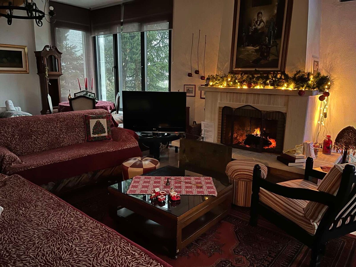 Cosy apartment in the area of Panorama Veroias, 5 minutes by car to the centre of Veroia. Free parking in front of the house. 2 bedrooms with a single and a king size bed. The sofa in the living room can sleep another two persons. There is a fireplace, 2 bathrooms, individual entrance, garden around the house, balconies with view at the city, kitchen with all the things that you will need, washing machine etc.