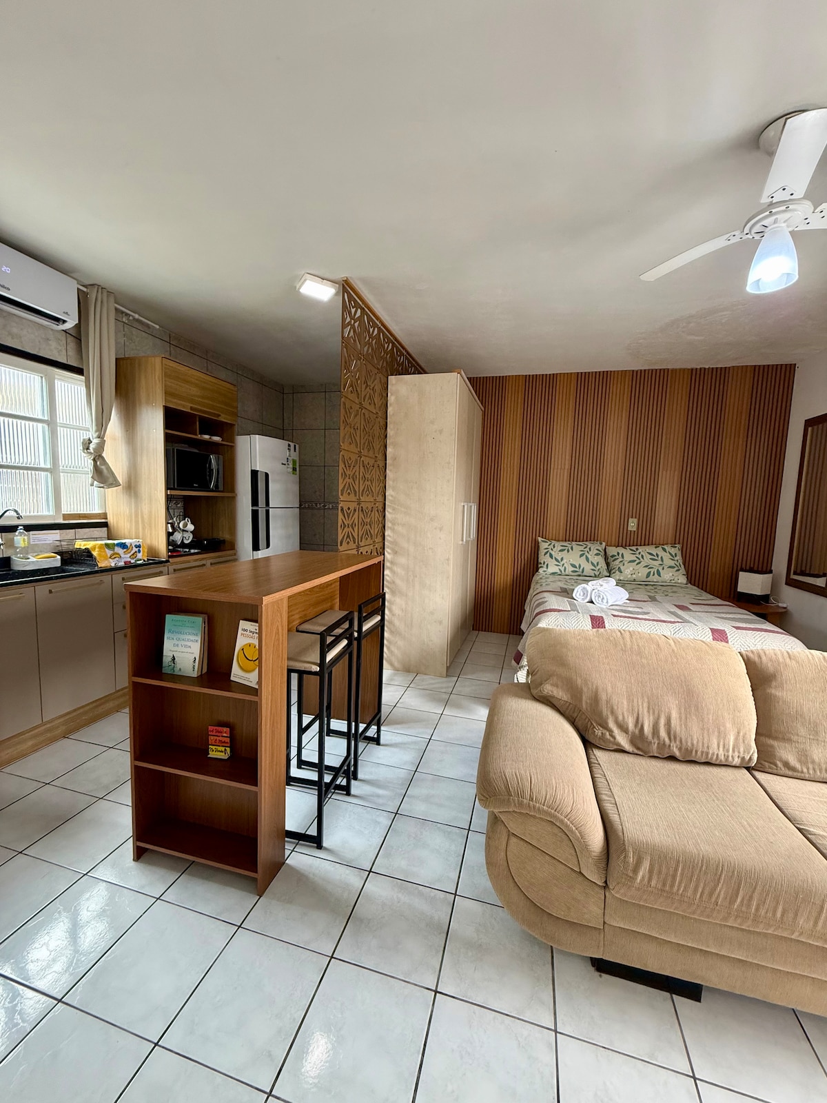 Reserve IMEDIATAMENTE! Todas as datas liberadas do calendário estão DISPONÍVEIS. Desfrute de dias tranquilos na praia de Imbé nesta kitnet aconchegante e moderna, ideal para casais ou viajantes que buscam conforto e praticidade. O espaço é completo e bem equipado, com cama de casal, sofá cama, ar condicionado, cozinha funcional com utensílios básicos, banheiro privativo e fechadura eletrônica para check-in fácil e seguro. A hospedagem conta com Wi-Fi, Smart TV e vaga de garagem rotativa.