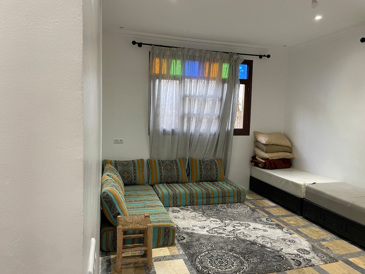 Nestled on the hills of Imi Ouaddar, the GROUND FLOOR of this villa will seduce you with its proximity (200 meters - 3 minutes on foot) to the rock free beach of Imi Ouaddar and with its decoration combining tradition and modernity. Its position on the ground floor will ensure freshness during the summer. Feel yourself at home. We make sure to do everything to guarantee your comfort. Please read the full description!