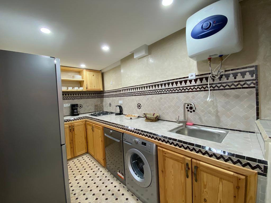 Descripción [Continuación] Nuestra casa es un riad con un hermoso patio interior y una magnífica terraza con barbacoa. La terraza de arriba ofrece tres zonas de estar diferentes y en el patio interior hay un grupo de asientos tradicional. En la planta baja se encuentran las siguientes habitaciones: Una cocina, un dormitorio con una cama doble para 2 personas, una sala de estar con capacidad para dormir 2 personas, así como un baño con ducha y el magnífico patio interior.