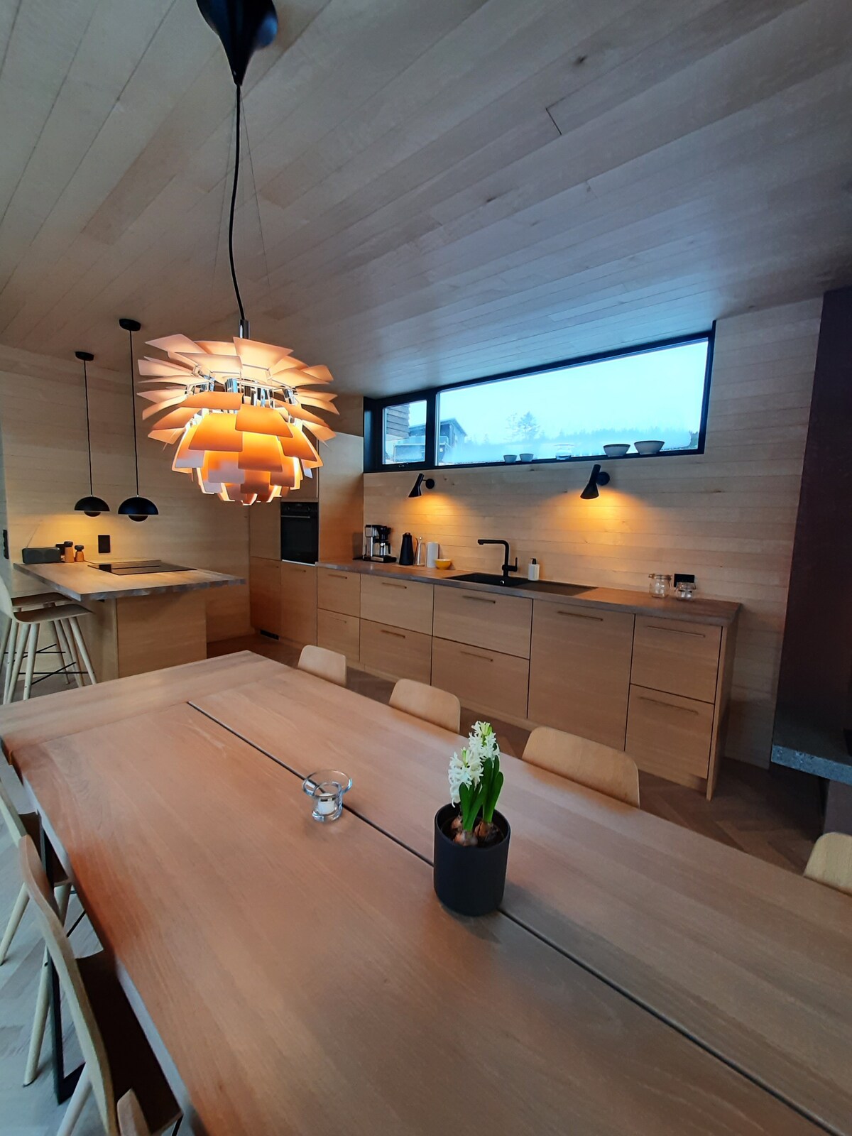 Casa de campo moderna y elegante en un entorno rural cerca de la zona residencial de Kjønstadmarka. Preciosa vista al fiordo y a poca distancia para tomar un baño. Aquí encontrarás la tranquilidad tanto en el exterior como en el interior. Agradable tanto en verano como en invierno. A 3,5 km de Trehusbyen Levanger, que ofrece un ambiente agradable, tiendas y restaurantes. Conduces hasta la cabaña, buen estacionamiento. ¡Nota! En invierno, hielo de madera y condiciones difíciles, es posible que tengas que estacionar a unos 30-40 m de la cabaña.
