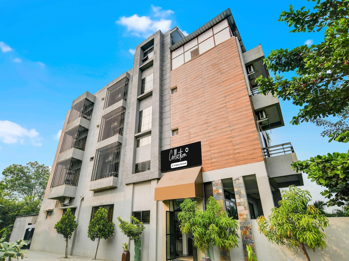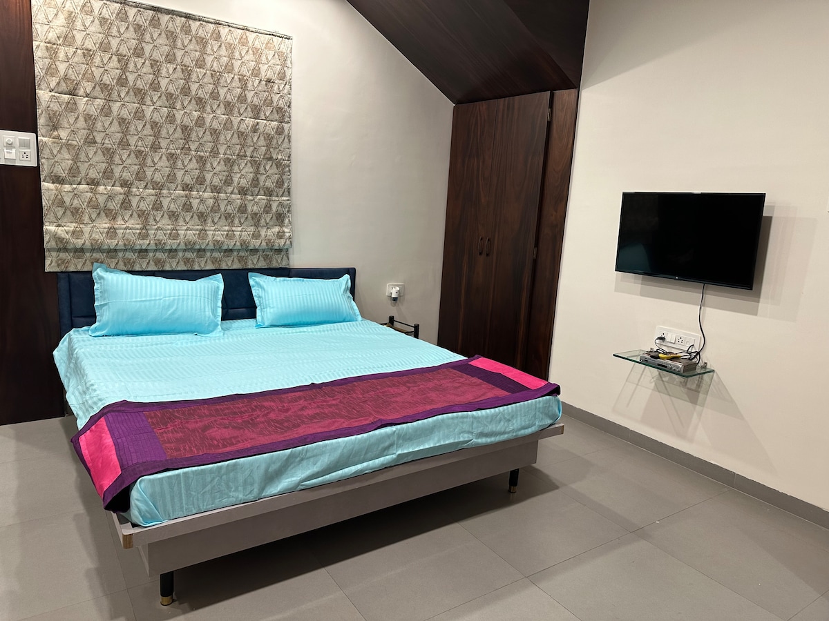 ¡Bienvenido a tu elegante refugio en el corazón de Indore! Cuenta con una cama tamaño king, sofá, espacio de trabajo, baño privado y una cocina para ti solo. Tendrás un espacio al aire libre compartido de cortesía. Con su ubicación estratégica, nuestro alojamiento ofrece un cómodo acceso a todo, lo que garantiza que nunca estarás lejos de la acción. Además, sirve como puerta de entrada a ciudades cercanas como Ujjain y Dewas. Situado a lo largo de rutas convenientes, llegar a estas joyas históricas y culturales desde nuestro lugar es muy fácil.