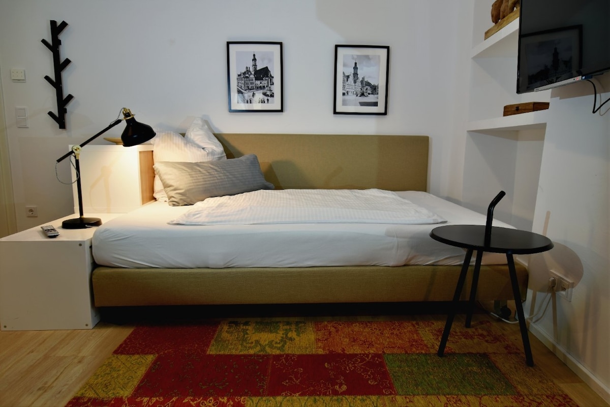 Alójate en 1 de un alojamiento Estudio Superior situado en el corazón de la ciudad. - Muebles de diseño (Saba Italia, Perdali y más...) - Cama de primavera con camas de lujo de capullo, tamaño de cama: 160 x 200 cm, ropa de cama de satén, ropa de cama como en hoteles de lujo. - cómodo sofá, TV inteligente. - comedor y escritorio propios. - Cocina totalmente equipada. - Acceso a la casa y al departamento con un PIN con check-in anticipado en línea. - Lavadoras y secadoras en el sótano a través de WeWash. - Limpieza semanal.
