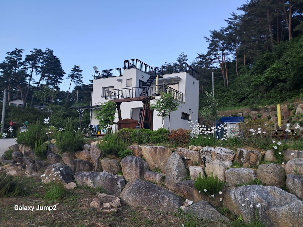 Pensión privada para disfrutar de la montaña, el mar, el valle y el campo en familia, 600 pyeong, chimenea, fogata