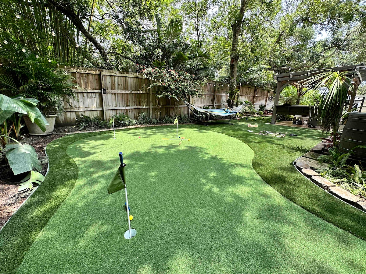 ¡Bienvenido a tu escapada ideal a la playa! Esta casa de dos pisos reformada es perfecta para familias o grupos. A solo cuatro manzanas de la playa, es fácil disfrutar del sol, la arena y el surf en cualquier momento del día. De vuelta en la casa, la cocina de concepto abierto y el salón ofrecen muchos asientos para las comidas, o simplemente para relajarse juntos. Sal y disfruta de tus canales favoritos a través de los altavoces Bluetooth al aire libre, o pasa la tarde jugando en el campo de minigolf o en el jardín después de un divertido día junto al mar.