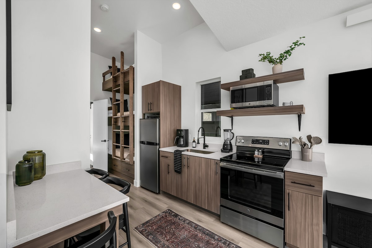 ¡Créeme, desearás haber reservado esto antes! • Perfecto para familias y amigos: capacidad para 7 personas cómodamente con una cama tamaño queen, una litera triple y una cama tamaño queen en el loft. • Relájate con estilo: la sauna te dejará sin palabras y las noches alrededor de la hoguera son inolvidables. • Aventura a la vuelta de la esquina: a pocos minutos de las pistas de Brian Head y de los senderos de verano. • Viajes ecológicos sin complicaciones: ¡carga gratuita para vehículos eléctricos en el lugar! • Todas las comodidades del hogar: cocina totalmente abastecida, lavandería, wifi rápido y televisores inteligentes.