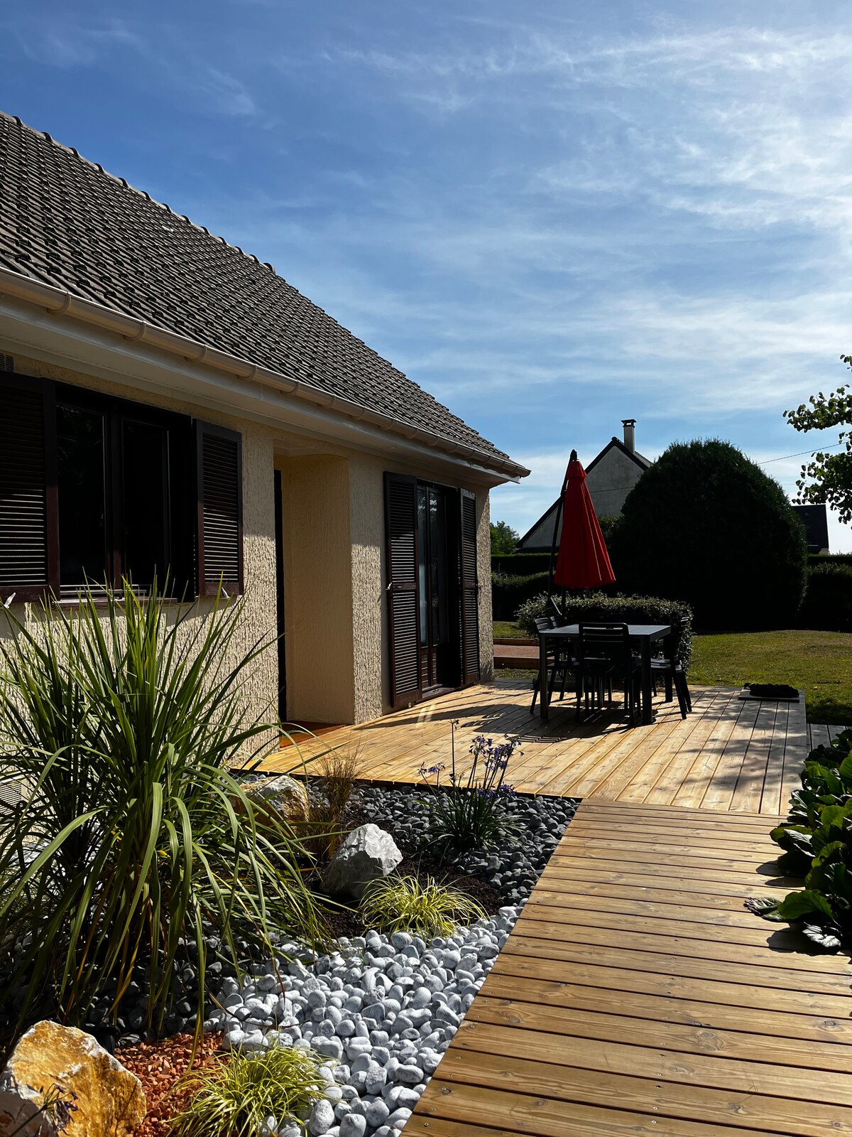 Estamos situados en la hermosa campiña de Normandía, nuestra pequeña casa ha sido recientemente renovada a un nivel muy alto ofreciendo una estancia cómoda, estamos a solo 5 minutos del pueblo más cercano de Gavray y a 15 minutos de las playas más cercanas, hay muchos lugares para visitar en Normandía y estamos situados en el centro para visitar todos. Tenemos un hermoso jardín cerrado, seguro para sus hijos y para relajarse durante estos días calurosos.