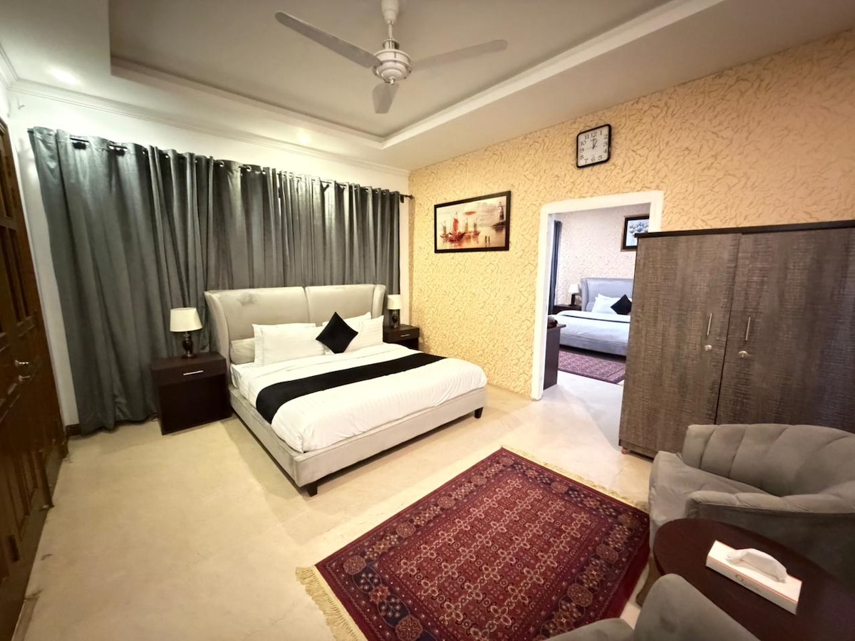 Decoración elegante y moderna, acogedora y céntrica ubicada en el corazón de Islamabad a solo un minuto de Centaurus Islamabad. Ambiente familiar, se observa total privacidad de los huéspedes. Televisión LED, wifi gratuito, canales vía satélite, aire acondicionado /habitaciones con calefacción central. Guardia de seguridad las 24 horas en las instalaciones. ¡Las ACTIVIDADES ILEGALES DE electricidad DE respaldo NO ESTÁN PERMITIDAS COMO DROGAS Y PROSTITUCIÓN!
