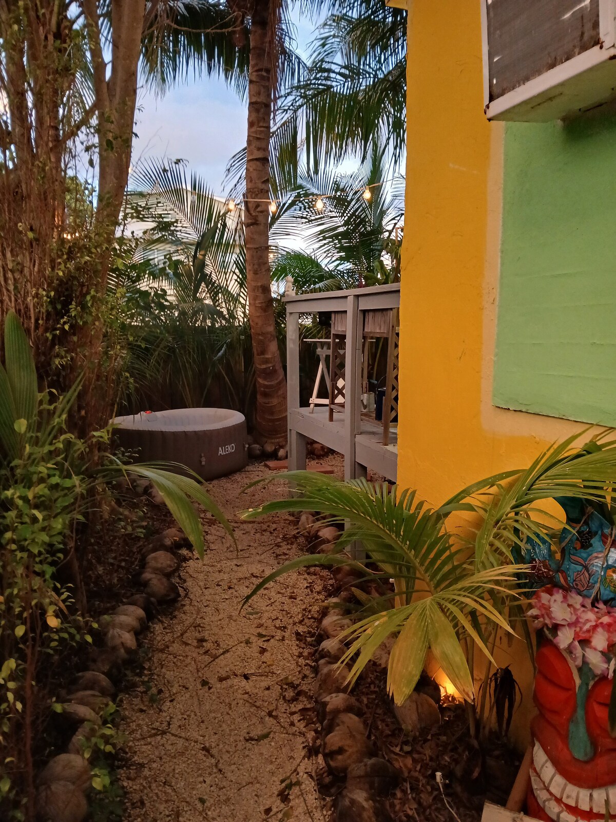 Take it easy at this unique and tranquil getaway. very cool little villa with its own fenced in yard, jacuzzi !! snacks drinks condiments are available! blender microwave toaster oven water kettle available! even a picnic basket to load up and take wherever you like ! FREE coffee and pancakes!: ) feel free to ask about small boat rental! : )