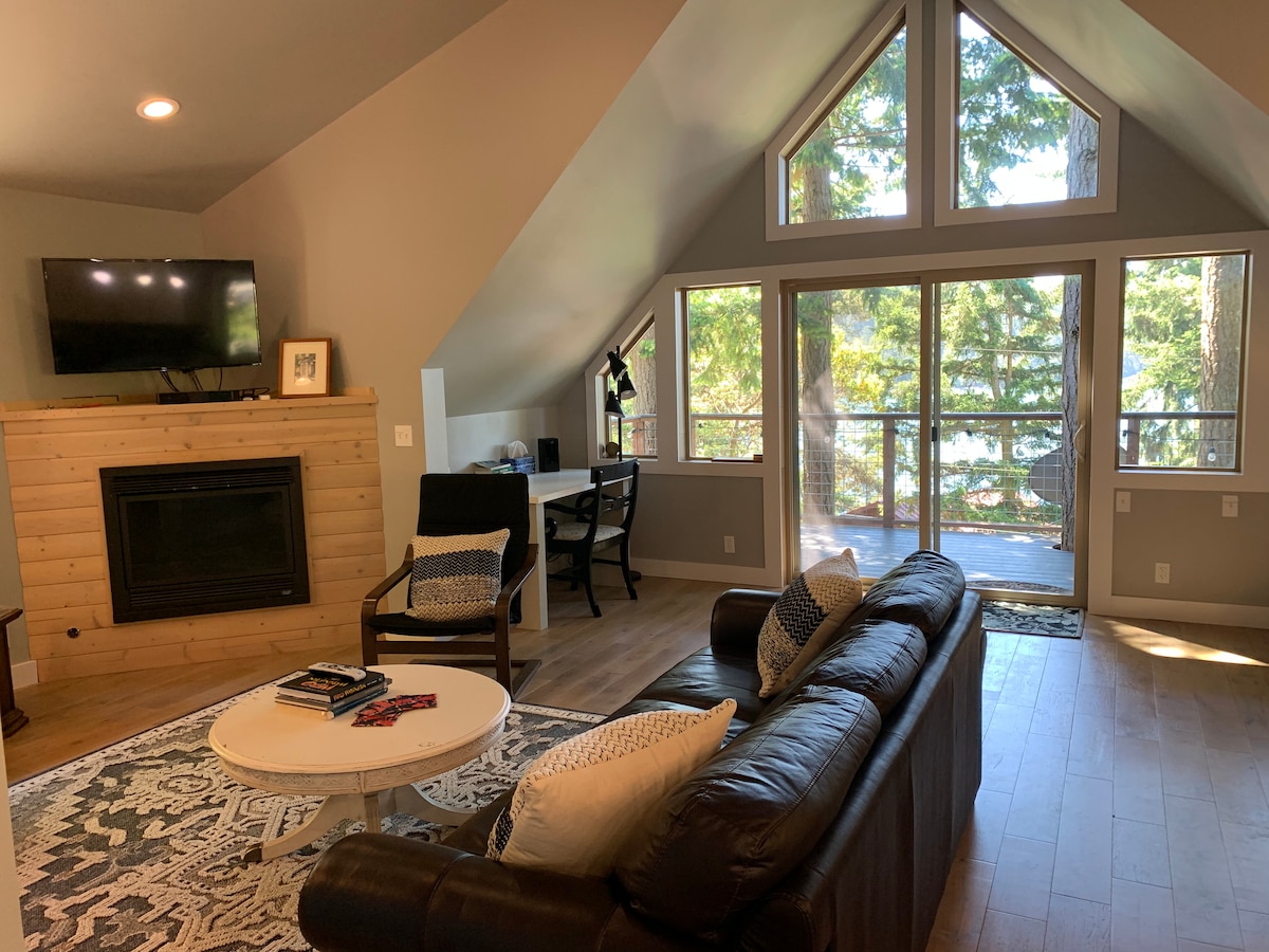 ¡Ubicado sobre la hermosa Penn Cove y a pocos pasos del centro de Coupeville, tu Suite Retreat te espera! Ubicado en cuatro acres privados, este es tu campamento base para aventuras en Whidbey. Este estudio privado y espacioso de 865 pies cuadrados en la planta superior cuenta con sala de estar, cocina, comedor, estación de trabajo y áreas para dormir. Las puertas francesas conducen a un balcón con vistas a los jardines y a Penn Cove. Perfecto para 2-4 personas, con una cama tamaño queen y un cómodo sofá cama tamaño queen. Wifi, altavoz Bluetooth y Smart TV para streaming.