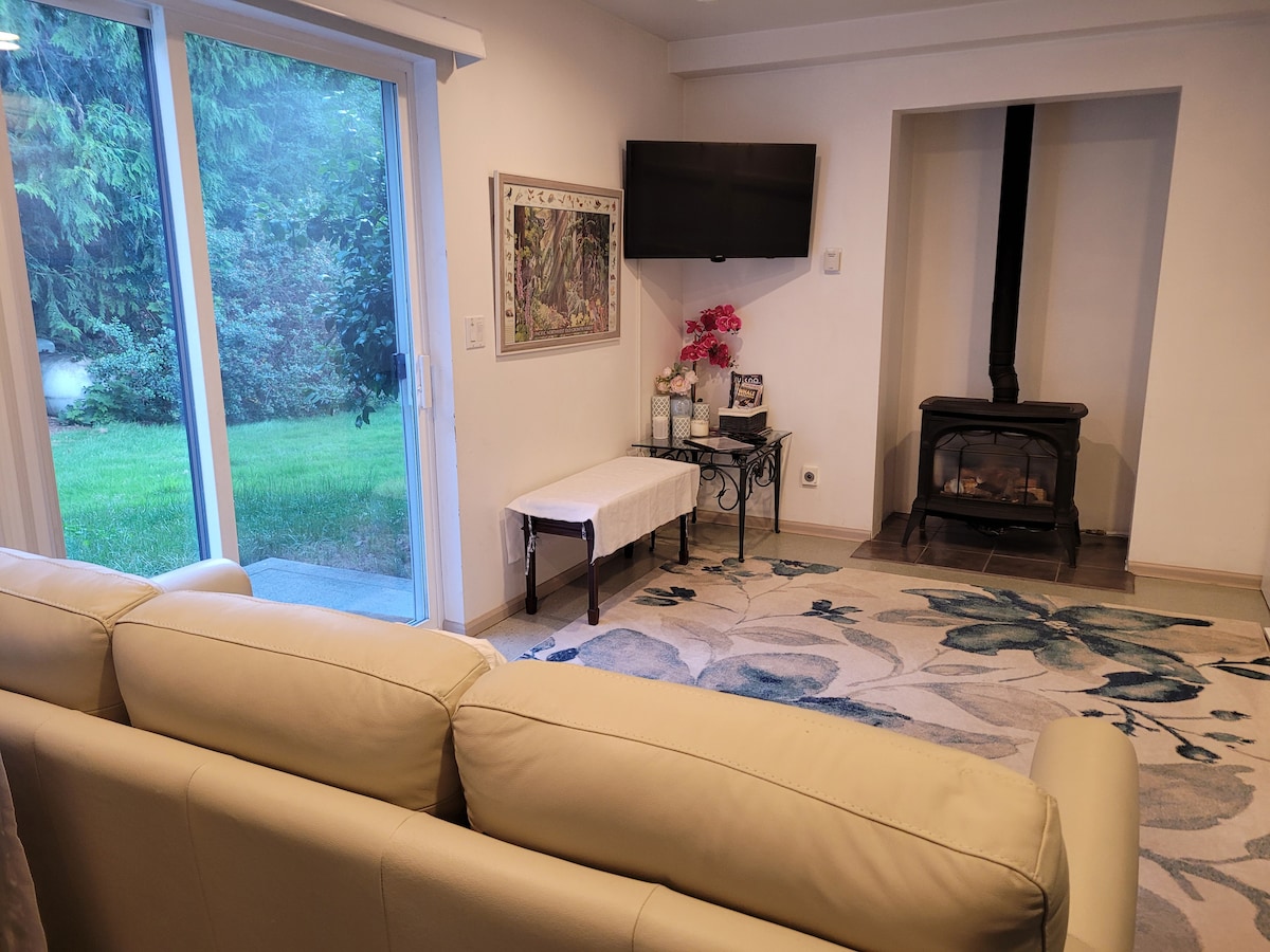 Escápese a The Beaver Den, un acogedor refugio en la hermosa isla de Camano. Esta moderna suite con luz natural en el sótano, de 1,200 pies cuadrados, ofrece un refugio privado y tranquilo rodeado de naturaleza. Disfrute de la observación de aves directamente desde las ventanas, relájese en el jacuzzi o explore las playas, los parques y los senderos cercanos, a solo unos minutos en automóvil. Ideal para parejas, familias o para una escapada tranquila, The Beaver Den combina comodidad, privacidad y el encanto de la isla.