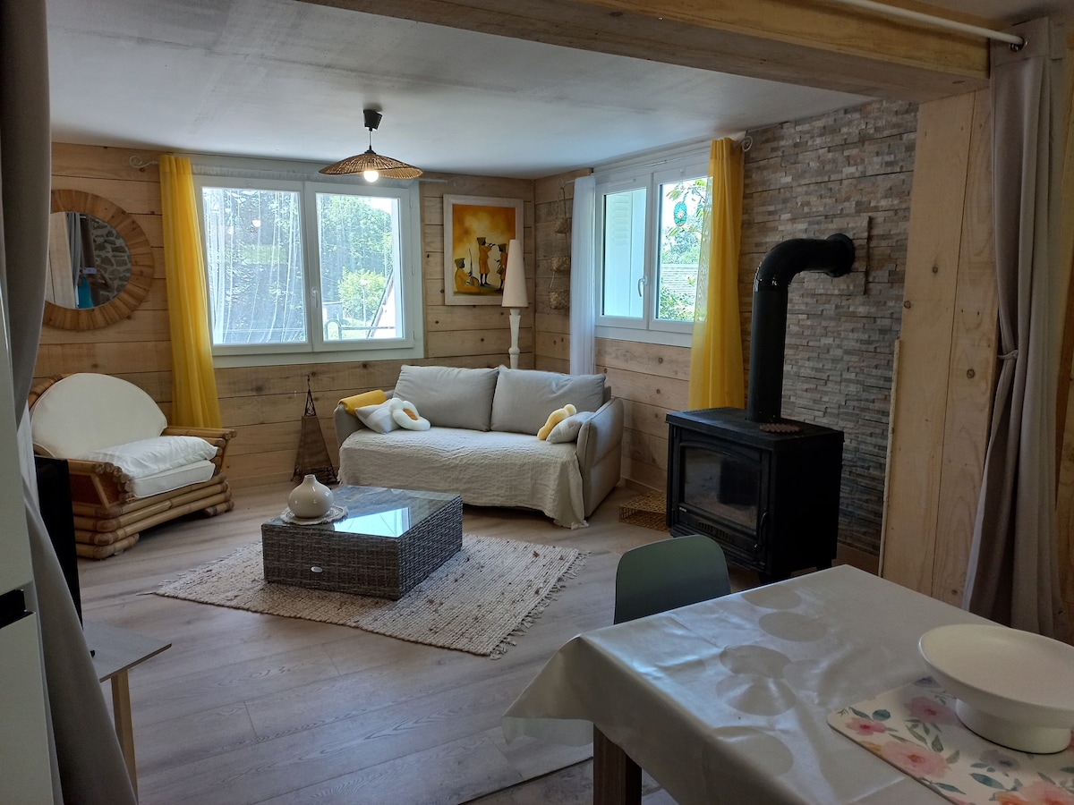 Déjese mecer por los sonidos de la naturaleza en este alojamiento único. A medio camino entre el valle de Aspe y el valle del Barétous, a 400 m de altitud, en un entorno natural y arbolado, venga a alojarse en el «Pod Au Rayon de Lune», un espacio acogedor y cálido donde podrá relajarse y disfrutar de unas vistas impresionantes de las montañas circundantes. Será completamente independiente con una entrada privada, una cocina americana y una terraza privada, con vistas a los Pirineos.