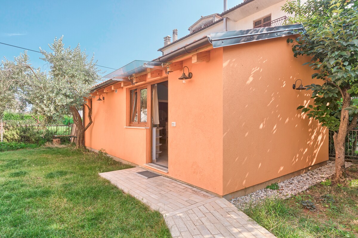 Nuestra pequeña casa es independiente (26 m2). La casa está situada en la zona recreativa verde junto al sendero para bicicletas y correr, a solo 450 metros de la hermosa atracción natural Lim Fjord o a solo 1 km de la playa marina y pública de Vrsar. Cuenta con estacionamiento privado, terraza abierta, parrilla y bonito jardín (500 m2) con olivos. El jardín y la casa tienen mucho sol durante todo el día. Está equipada con cocina americana, lavadora, ropa de cama y toallas, wifi, TV y aire acondicionado.