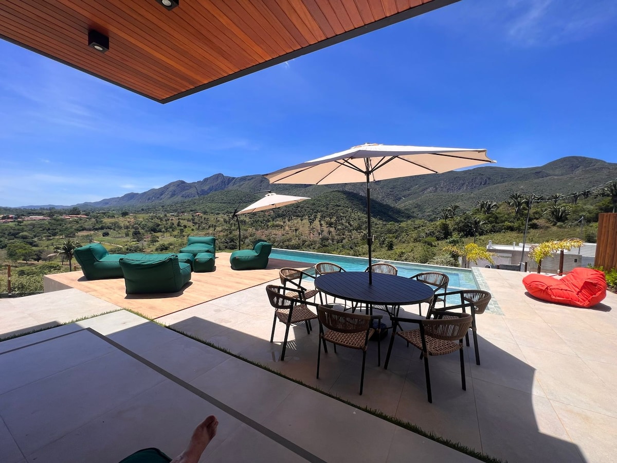 Divirta-se com toda a família neste lugar cheio de estilo. Casa ampla, alto padrão em itaitu, localização privilegiada, com vista para as belas serras. 4 suítes, Acomoda até 12 pessoas. Ar condicionado nos quartos e na sala. Piscina com Deck e borda infinita. Garagem para até 8 carros. 1.200 metros de área total. Churrasqueira a Gás sem fumaça. Lareira externa. Casa localizada a 5 minutos andando para cachoeira do Coxinho.