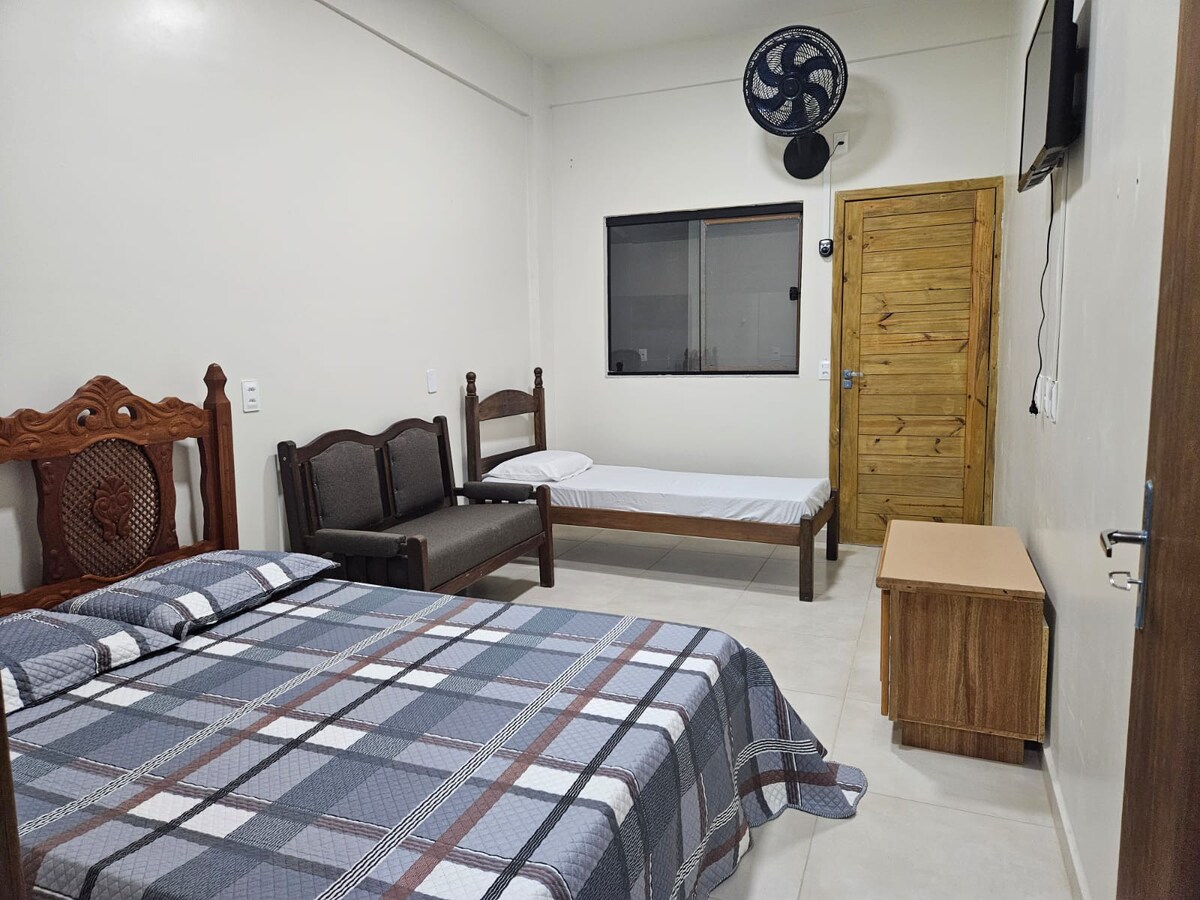 Casa ubicada cerca de la playa, noria, muelle de Barra Norte, supermercados, farmacias, farmacias, restaurantes, restaurantes, conveniencia y gasolinera... Espacio independiente de la casa principal. Uso de la misma entrada solamente. Está en la planta baja con balcón. Cocina con estufa, nevera y utensilios en general. Lavandería, lavadora. Tiene 1 dormitorio con 02 camas dobles y 01 colchón doble para usar en el piso. 50,00 R$ adicionales por persona adicional. ( límite de 02 personas)