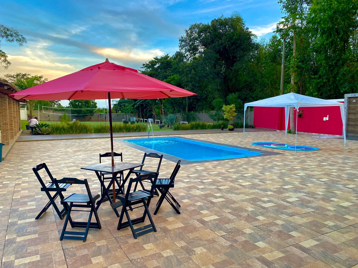 Relájate con toda la familia en este acogedor refugio con mucha privacidad, seguridad y fácil acceso en un condominio en el distrito de Marilândia, Minas Gerais.