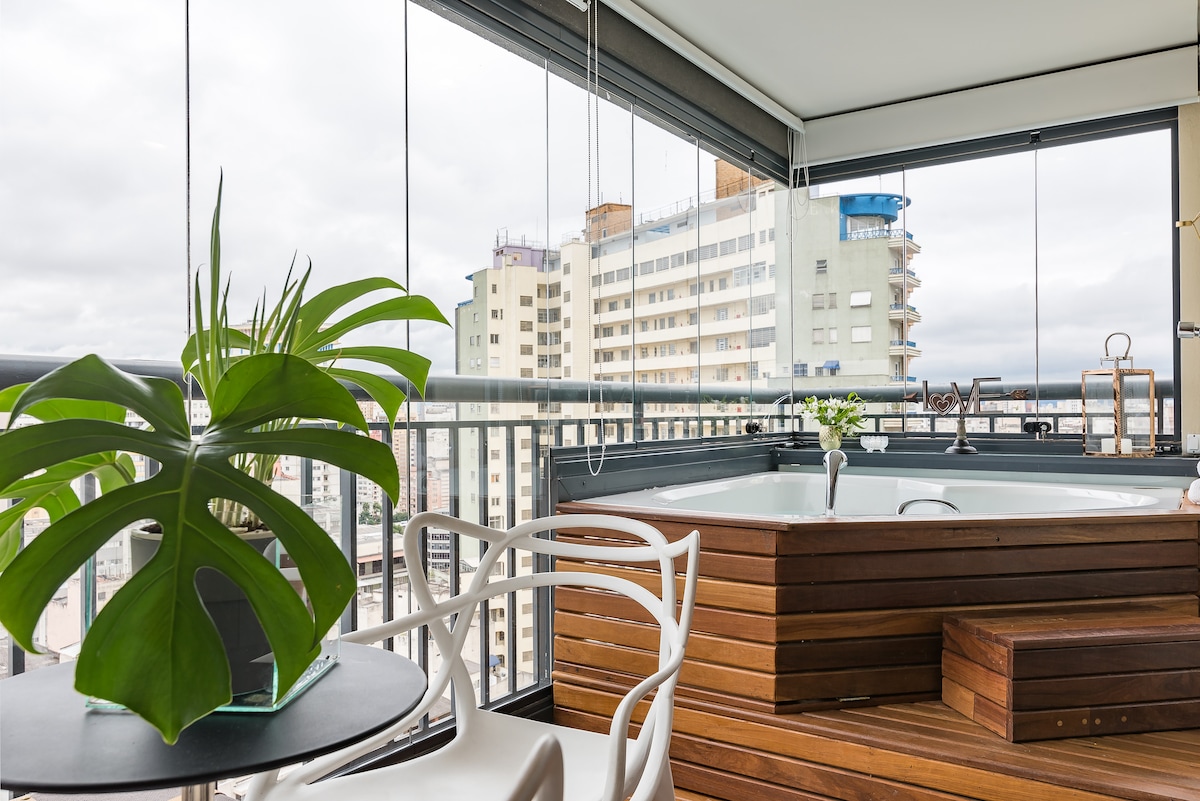 Bañera de hidromasaje privada con excelentes vistas a la ciudad. Bela Vista