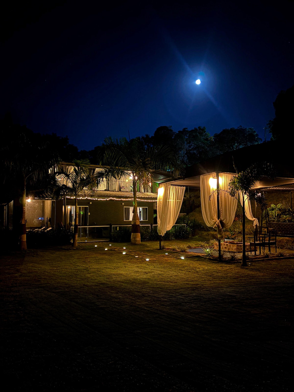 Espacio exclusivo para parejas en medio de la naturaleza, zona verde con río, patio con pista de arena, acogedora chimenea al aire libre con iluminación cálida, una maravillosa hamaca suspendida de 3 metros de altura y ancho, zona gourmet con barbacoa, horno y estufa de leña con ollas de piedra y arcilla, zona de spa con terapia de ozono y cronoterapia, zona de cine con pantalla súper de 3 metros, suite con aire acondicionado, cama súper king, TV inteligente, cocina amueblada. Todos los espacios son cerrados y privados.