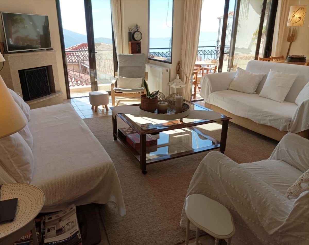 ¡Un ático en la cima de una colina que ofrece vistas panorámicas únicas del golfo de Corinto y el valle de los olivos del Oráculo de Delfos! El balcón ofrece algunas de las mejores vistas de Delfos, ¡uno de los valles más importantes e inspiradores de la Antigua Grecia! ¡Amplio y cómodo, que ofrece 2 dormitorios dobles, sala de estar, chimenea, cocina totalmente equipada con comedor y baño grande! ¡El condominio será tu base ideal para explorar Delfos y las pintorescas ciudades Arachova, Galaxidi, Itea!