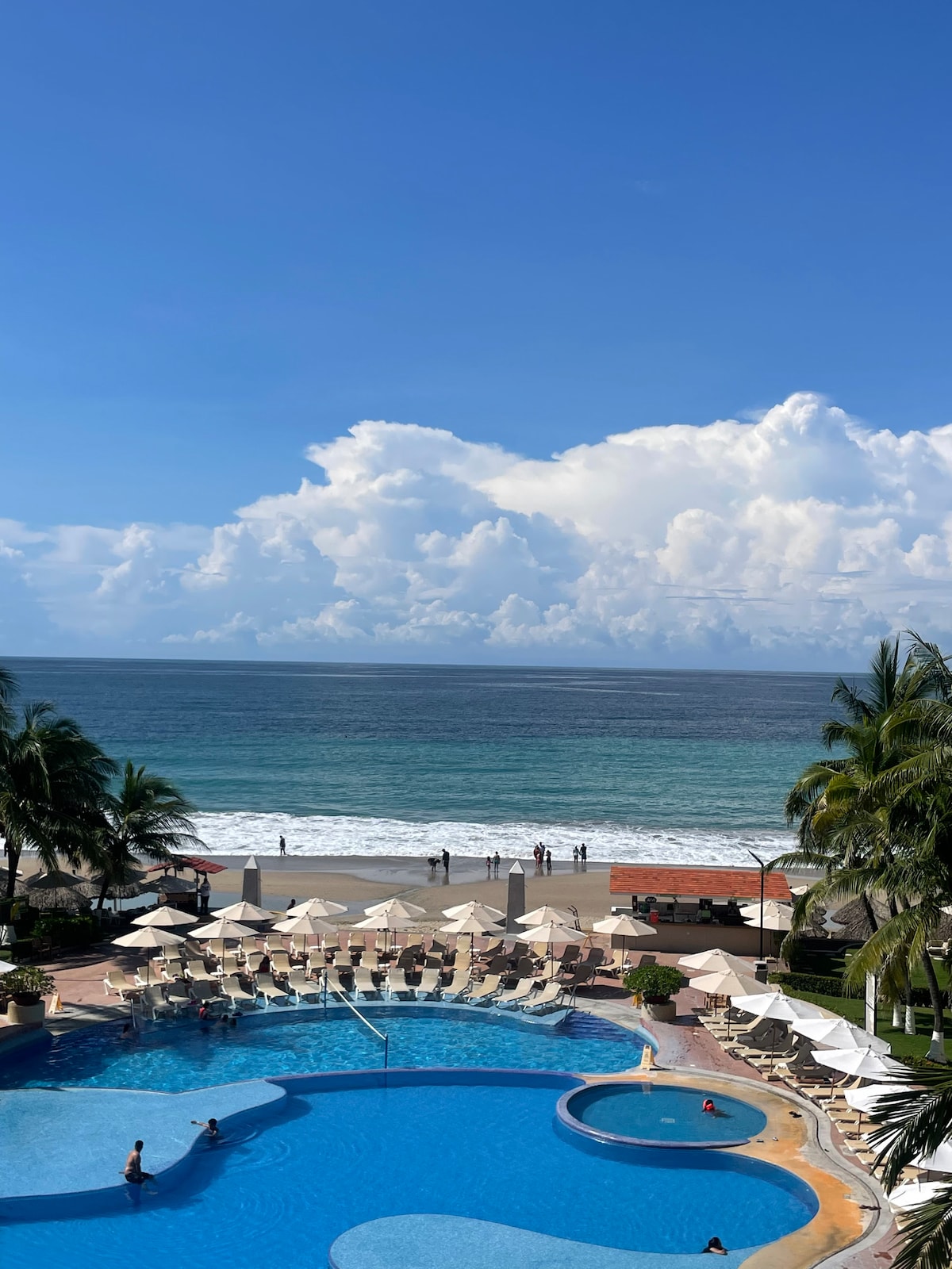 Una encantadora escapada frente a la playa desde donde uno puede relajarse cómodamente, comer y dormir, cuando no está disfrutando de la hermosa playa y piscina y todo lo que ofrece Ixtapa. El apartamento se encuentra en el sexto piso y tiene una espectacular ventana panorámica de pared a pared en el salón que se abre a fantásticas vistas a la montaña, al campo de golf y al amanecer. Las puertas correderas del patio conducen a fabulosas vistas al mar y a las montañas con increíbles puestas de sol sobre el océano Pacífico.