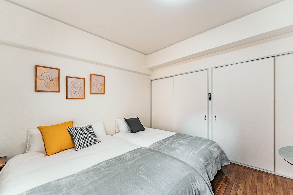 3 min a Okaido|1K Apt 23㎡|Doble + Individual|3 huéspedes