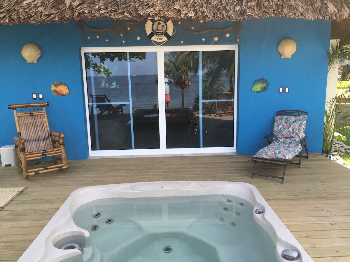 Despiértate con el sonido de las olas y las impresionantes vistas al mar cuando visites Livingston, Guatemala. Esta hermosa casa de playa frente al mar es ideal para parejas que buscan una escapada caribeña tranquila, romántica y auténtica Ubicada directamente en la playa de Quehueche, poco después del puente del río Quehueche (9 minutos a pie), esta acogedora casa de 2 niveles ofrece comodidad y vistas inolvidables de la bahía de Amatique. Te encantará Esta casa de playa es el lugar perfecto para desconectar y disfrutar plenamente del océano
