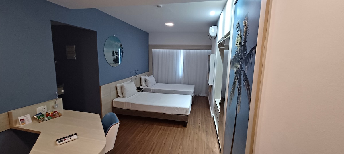 Piso 1806 en el Hotel Transamérica Prestige, construido pensando en los más mínimos detalles para que el huésped tenga una excelente estancia. Ofrece comodidad, modernidad y sofisticación. Se encuentra ubicado frente al mar, en la playa de Boa Viagem, en uno de los paisajes más bellos de la costa de Pernambuco. Nuestro espacio cuenta con todos los elementos necesarios para su comodidad, desde microondas, minibar, cafetera, Smartv con Netflix, Internet Wi-Fi 240 Mega. Está cerca de centros comerciales, mercados, polo médico y restaurantes.
