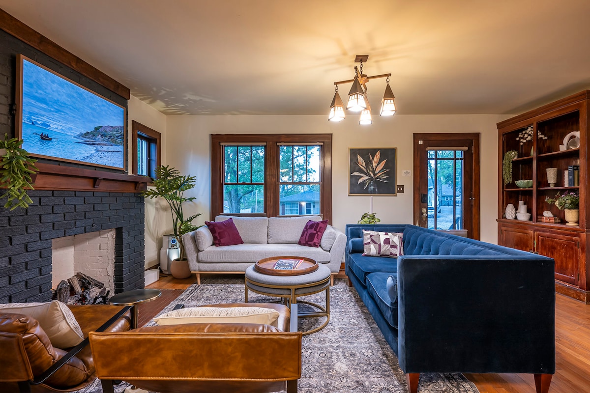¡Reúne a tu equipo y haz de esta elegante casa de Midtown KC tu cuartel general para el día del partido! Disfruta de los partidos en el cine privado, sumérgete en el jacuzzi o diviértete en la sala de juegos. Enciende la barbacoa del patio trasero, relájate con bebidas y celebra cada gol juntos. A pocos minutos de los estadios y del distrito de Power & Light, es el lugar perfecto para alojarse, jugar y animar a tu equipo. Amplio, céntrico y lleno de buenas vibraciones: ¡tu estancia ganadora en Kansas City comienza aquí!