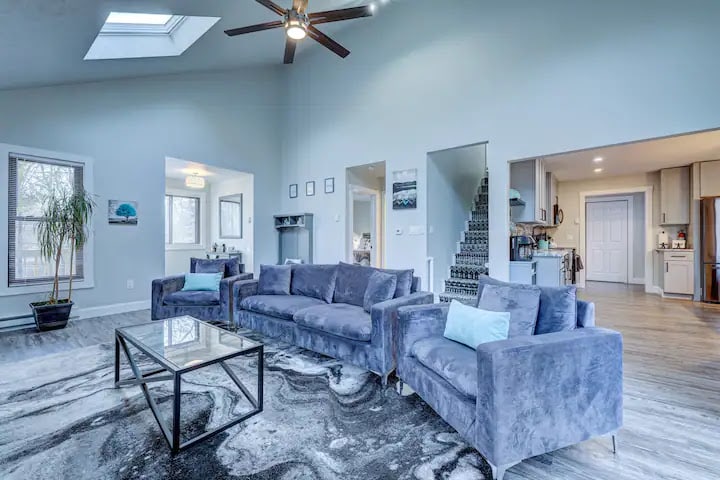Nuestra casa está justo al final de la carretera desde la zona de esquí de Shawnee Mountain. Situado entre las cataratas Bushkill y el Área Recreativa Nacional de Delaware, ofrece esquí, senderismo, ciclismo, ríos, arroyos y cascadas. De primavera a otoño, fácil acceso a alquileres de kayak o canoa. Numerosos campos de golf a pocos minutos. La histórica ciudad de Delaware Water Gap y Stroudsburg ofrece una variedad de restaurantes, locales de música, bodegas, cervecerías y boutiques. Lo mejor de todo es que estamos a solo 75 minutos al oeste de Nueva York.