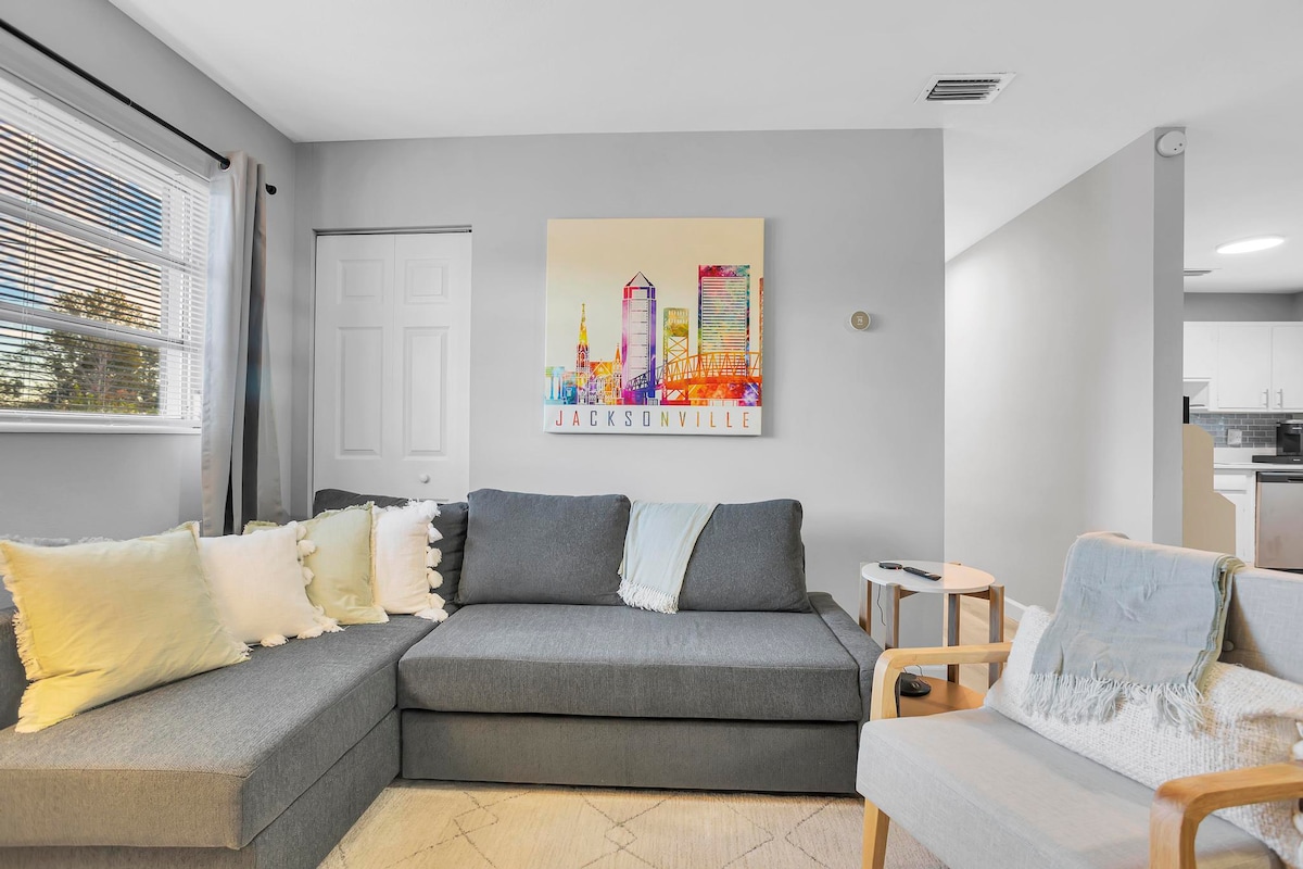 Disfruta de este elegante apartamento de 1 dormitorio con una ubicación céntrica en el corazón de Jacksonville. Este apartamento está a solo 20 minutos en coche de las hermosas playas de Jacksonville y está muy cerca de muchos restaurantes y tiendas. El apartamento 1 BR 1 BA es perfecto para familias pequeñas o parejas y tiene capacidad para 4 personas. ¡Perfecto para viajes en grupo! Asegúrate de leer todas las reglas de la casa si se infringe alguna de las reglas de la casa, se cobrará una tarifa mínima de $ 500.