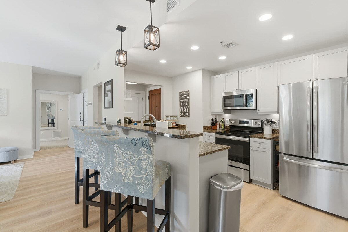 Disfruta de la comodidad de un departamento espacioso y de lujo diseñado solo para ti. Con dos grandes suites principales, camas tamaño king y baños privados, tendrás todo el espacio que necesitas para relajarte y recargarte. Puedes descansar junto a la piscina estilo resort, mantenerte activo en el gimnasio de última generación o explorar tiendas y restaurantes cercanos en el centro de la ciudad. Estás a solo 15 minutos de la playa y cerca de la Clínica Mayo. Con fácil acceso a la I-295, te encantará lo conveniente que es todo a tu alrededor en esta ubicación privilegiada.