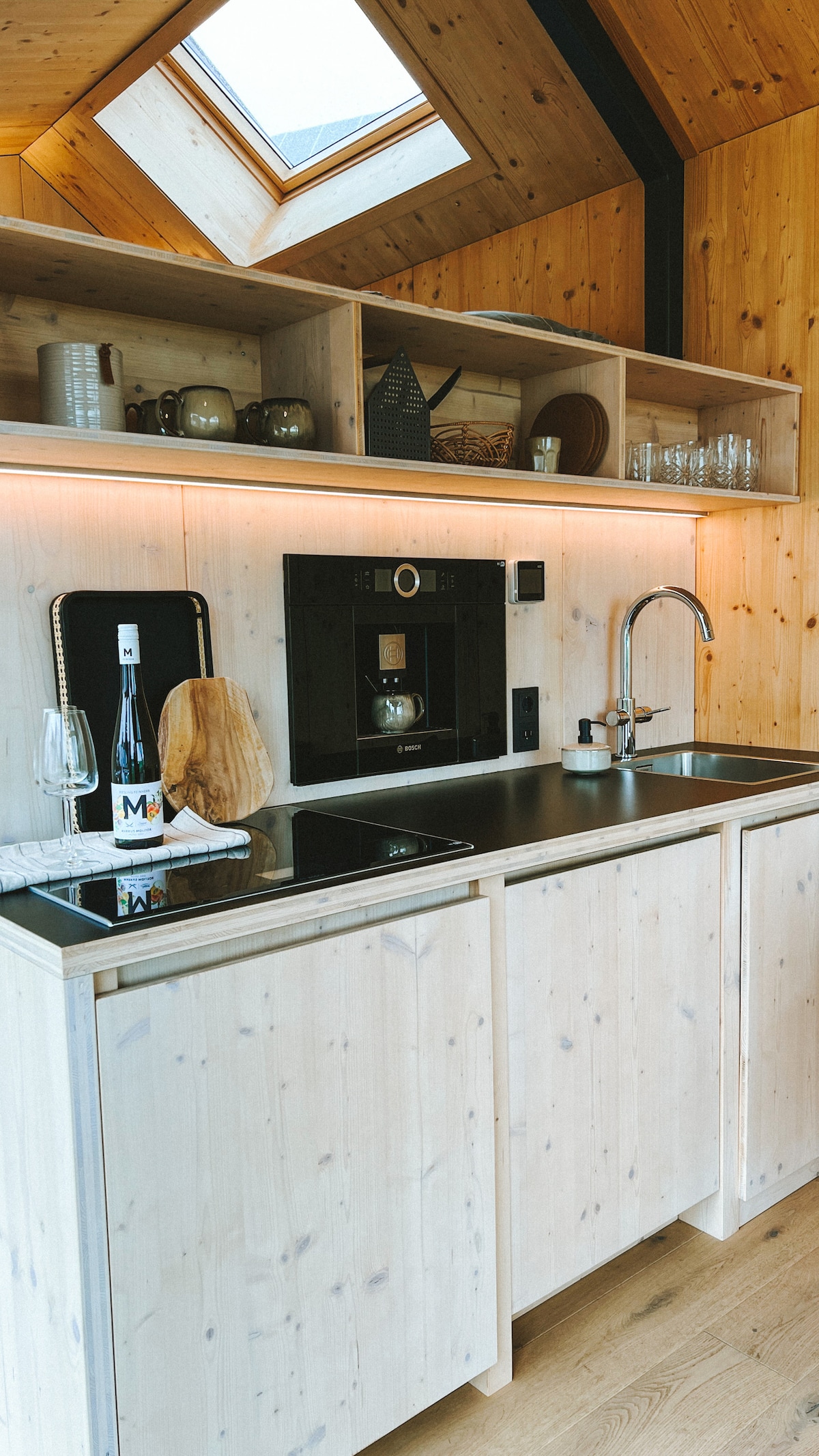 Las casas rurales están construidas sobre pilotes. Cada uno tiene su propia escalera y acceso. Ambas casas están equipadas con cocina completa y baño. La cocina con nevera, fogones, horno, cafetera Senseo y cafetera de filtro, hervidor de agua y todos los utensilios de cocina que necesitas. En el baño, encontrarás un inodoro, un lavabo y una ducha, así como un secador de pelo y toallas de mano y de ducha. Ambas habitaciones tienen televisores grandes de pantalla plana. Muy buena recepción wifi