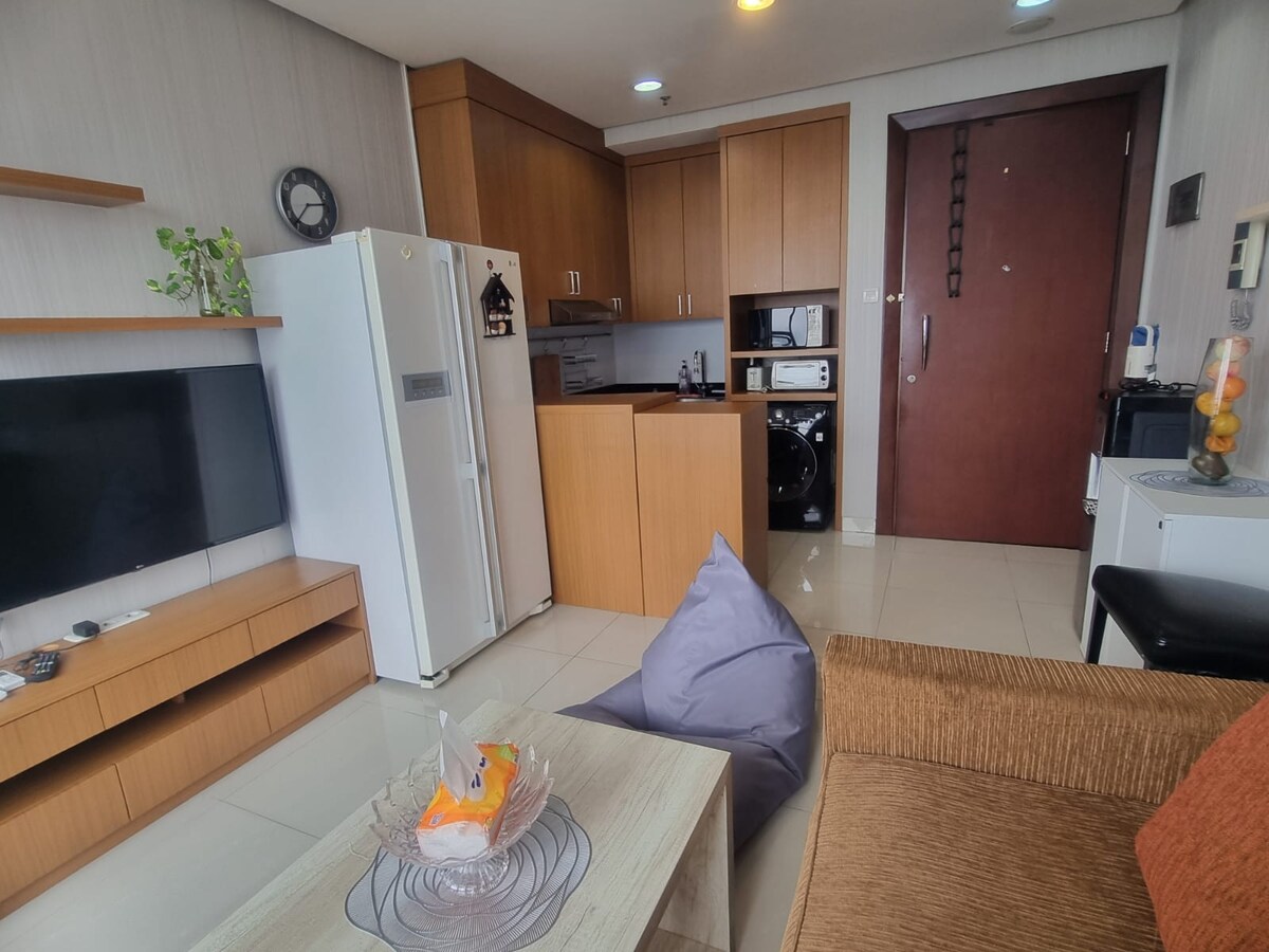This is a spacious, clean studio which can be turned into 1 comfortable bedroom. It has a portable dividing wall. Designed in scandinavian style. This rare-type apartment has an extremely beautiful city light view of Jakarta. Surrounded by restaurants, bar, entertainment and offices, this apartment is very suitable for both professionals and family. The apartment has restaurants, clinic, mini market, gym and swimming pool, qand 24-hour security system for safety. CCTV abailable in each floor