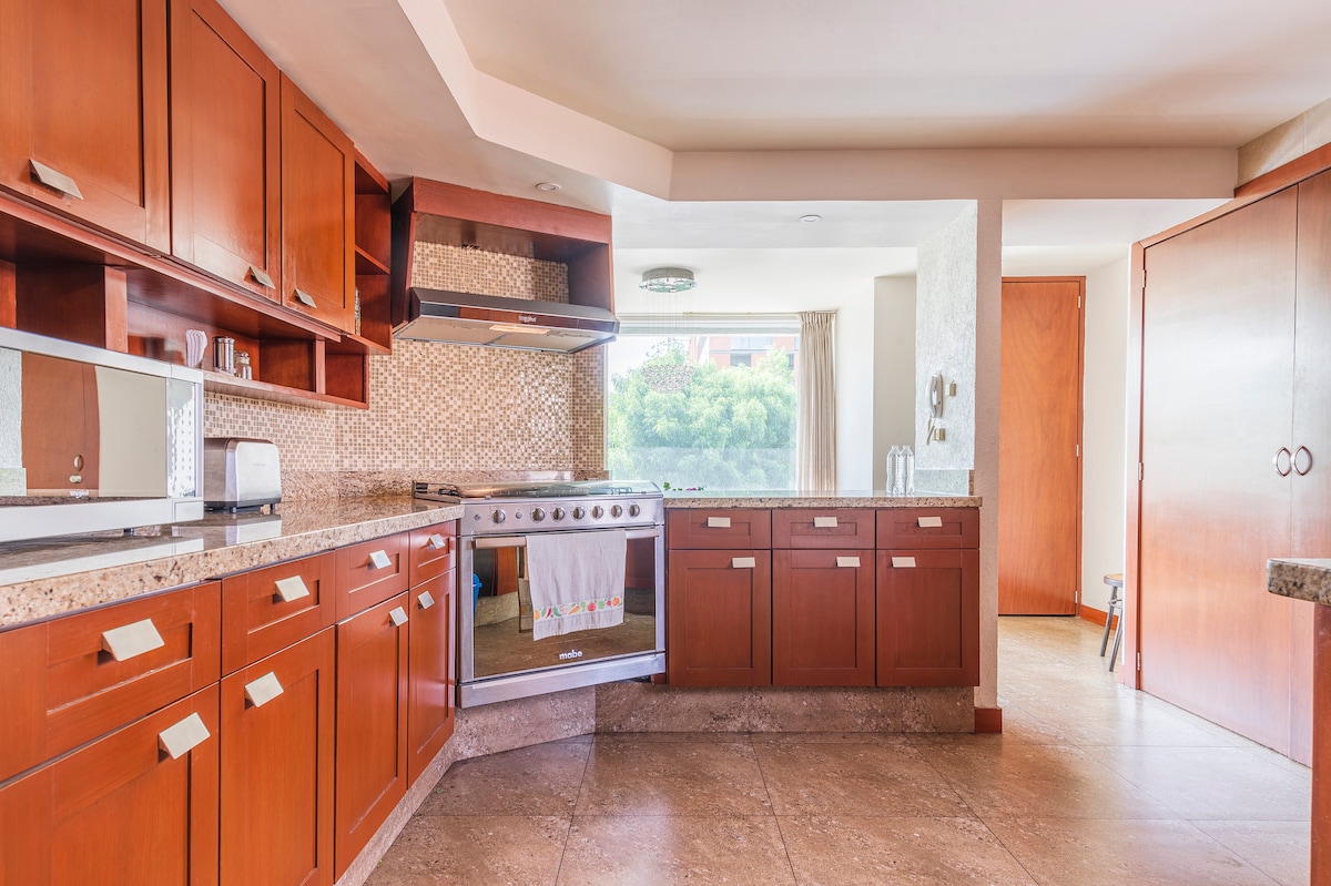 CITILUXE es un departamento moderno y totalmente equipado que combina funcionalidad y comodidad. Cuenta con cocina integral equipada para cocinar como en casa, aire acondicionado en todas las habitaciones y pantallas en sala y recámara principal. Su decoración armoniosa crea un ambiente cálido y acogedor, ideal para viajes de descanso o trabajo, ya sea en estancias cortas o prolongadas. ***ALBERCA EN MANTENIMIENTO***
