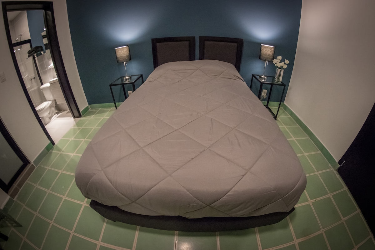 ✭"En mi opinión, el mejor lugar para hospedarse." ✭ Masaje relajante (15 mins) de cortesía! → Walk Score 85 (Abarrotes, restaurantes, cafés, bares, museos) → 1 minuto caminando al centro de Guadalajara → Cocina completamente equipada + surtida → Barrio seguro → Puerto de carga USB en paredes Cama Queen suave. dos almohadas hipoalergénicas. Recuerde, su hogar lejos del hogar (: 40 min en auto desde el aeropuerto de Guadalajara
