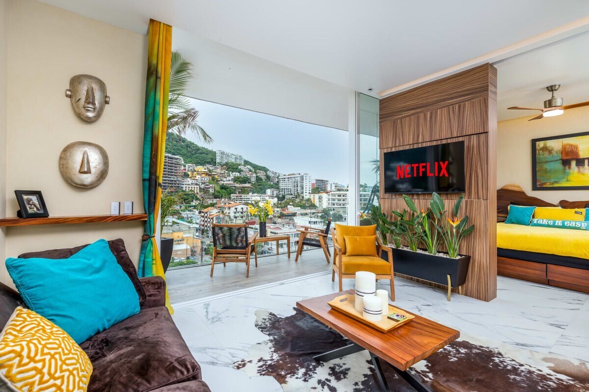 Luxurious Puerto Vallarta Retreat — Just 1 Minute to the Beach 🌊 Enjoy comfort, style, and location in this thoughtfully curated home hosted by an experienced superhost. ✨ Highlights ☞ Private balcony with beautiful views ☞ Rooftop pool, sauna & steam room ☞ Fully equipped gym ☞ Gated building with 24/7 security ☞ King-size bed & high-end kitchen ☞ Ultra-fast 164 Mbps WiFi ★ “A true gem! Perfect location, comfort, and amenities.” 🌴 Book your Puerto Vallarta escape today!