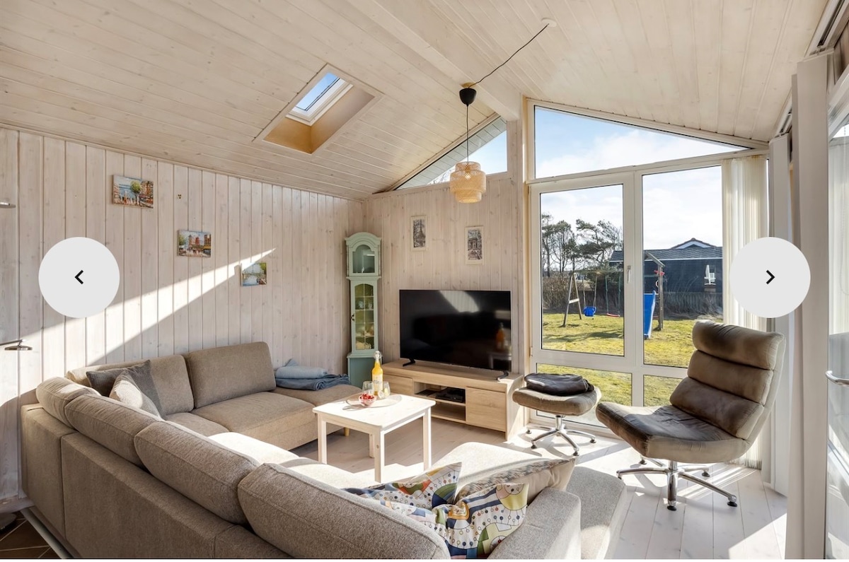 Relájate con toda la familia en este alojamiento tranquilo. A 300 metros a pie de la fantástica playa de arena, a través de las características dunas de la costa oeste. Terraza de madera completamente privada que rodea la casa, lo que te permite encontrar siempre un gran lugar para disfrutar del sol, ¡o saltar al baño en la naturaleza para relajarte! ¡Prepárate para experimentar los muchos lugares interesantes del norte de Jutlandia a poca distancia en coche! PD: las sábanas/ropa de cama se pueden alquilar por un cargo adicional de 25 euros/persona