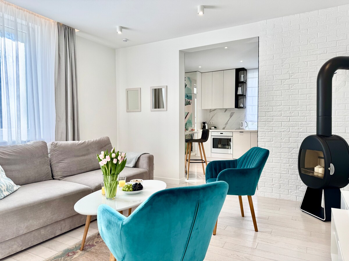Modern and inviting space for up to 4 guests. With an open-plan layout, the studio seamlessly combines the bedroom, living area, and kitchenette. Enjoy the rooftop terrace, gym, coworking space and children’s playroom in the building. Walking distance: Old Town 10 minutes, Museum of the II World War 5 minutes, St. Mary's Church, Amber Sky Ferris Wheel, Gdanski Shipyard just a walk away! Choose the right place to stay in Gdansk!