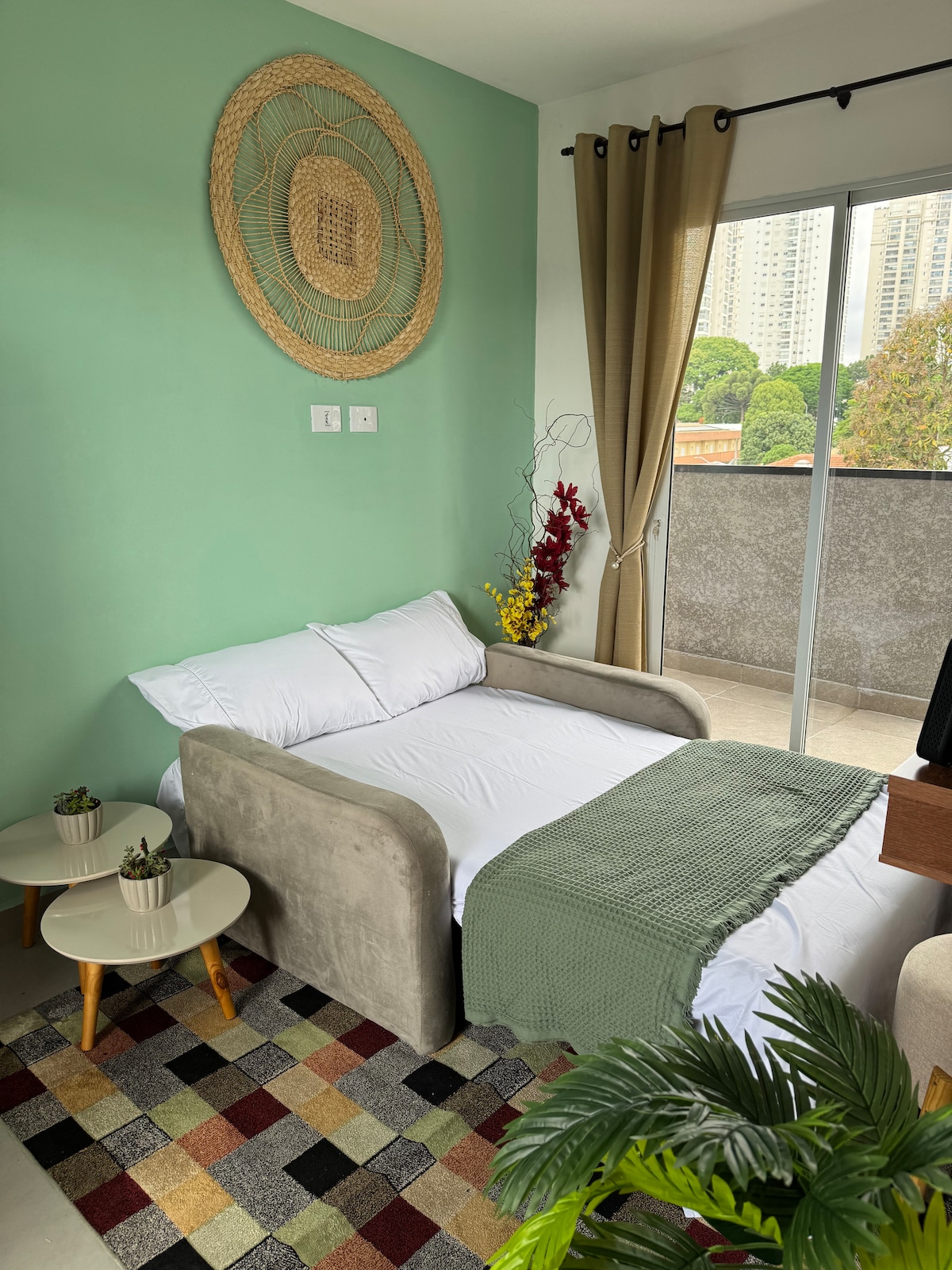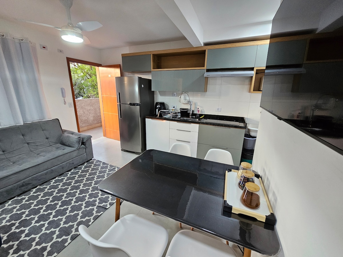 Hermoso estudio en un proyecto con diseño moderno y cálido, con espacio para bicicletas, gimnasio y coworking. A solo 400 metros del metro de Vila Sônia, que da acceso a la línea amarilla a Butantã, Pinheiros, Itaim y Faria Lima. La estación Butantã da acceso a la USP (circular interna 8012, 8022 es el punto final aquí) Cerca de Morumbi (2 km) y del Hospital/Universidad Einstein (2,7 km) Fácil acceso a Congonhas Tiene capacidad para 4 personas - Cama doble, sofá cama individual, colchón inflable
